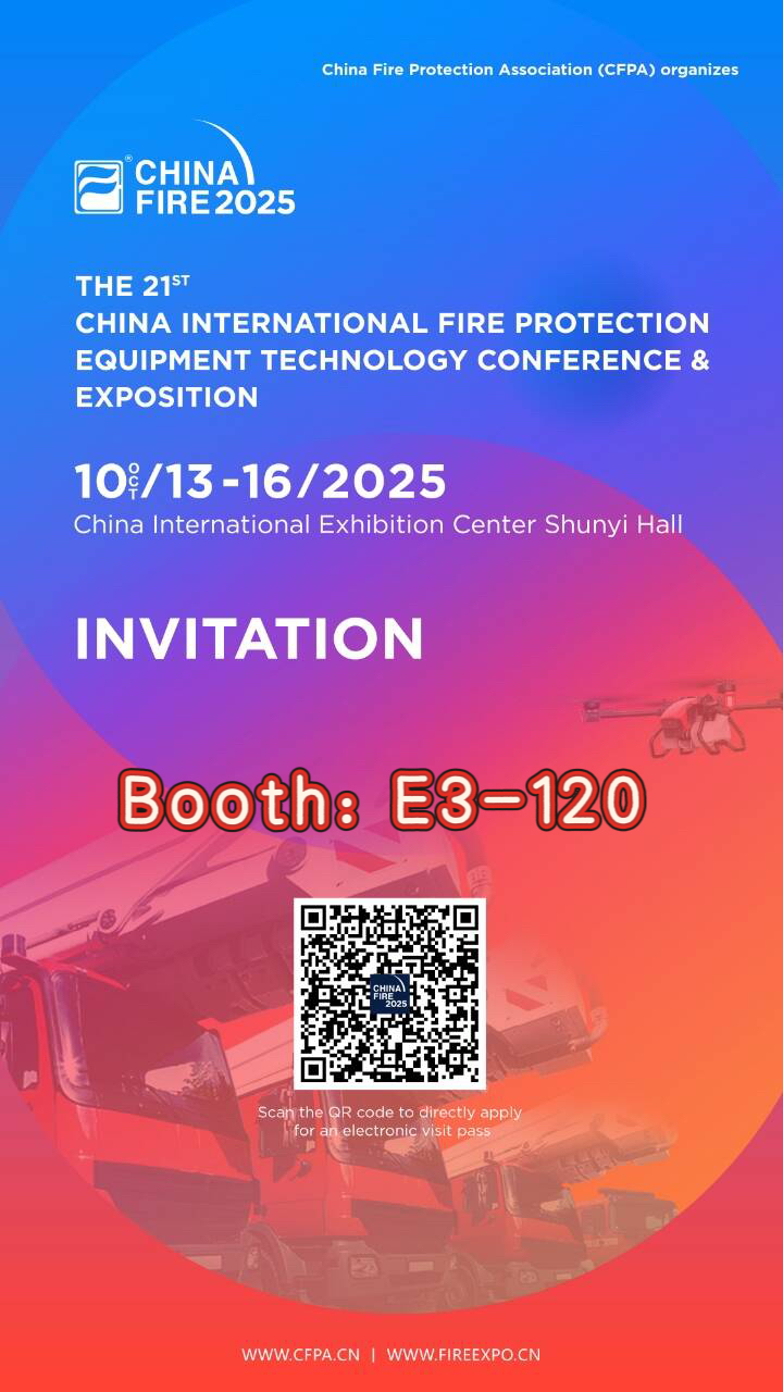 업계 전문가, 파트너, 고객 여러분의 방문을 정중히 초대합니다. 부스 E3-120 , 여기서 우리는 광범위한 고성능 소방 제품을 전시할 것입니다.
